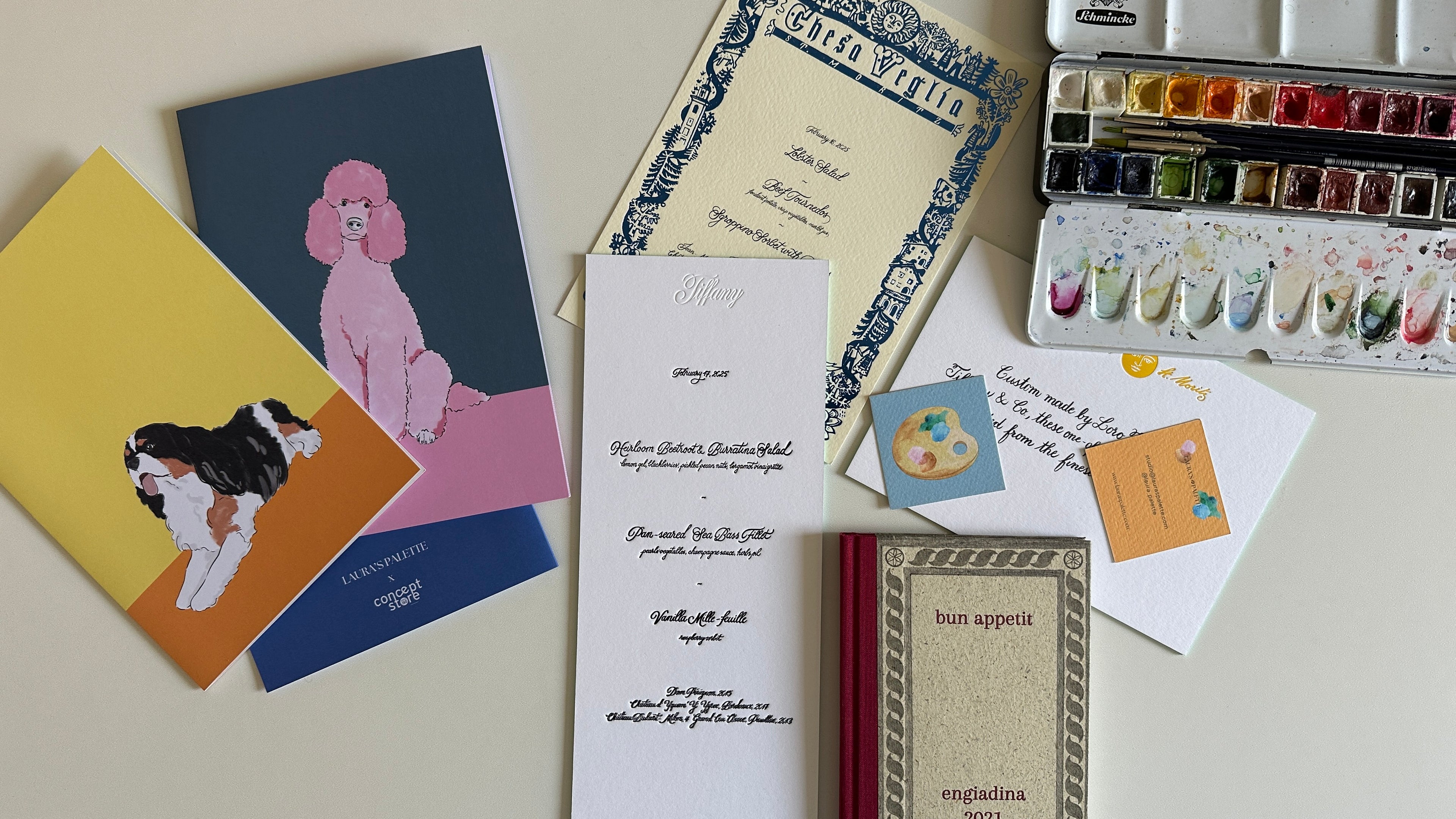 At Laura's Palette, we love collaborating with brands and businesses to bring unique, customized stationery and illustrations to life. Our partnership services include designing bespoke event stationery for hotels, bars, and restaurants, as well as creating illustrations and patterns for products and websites.